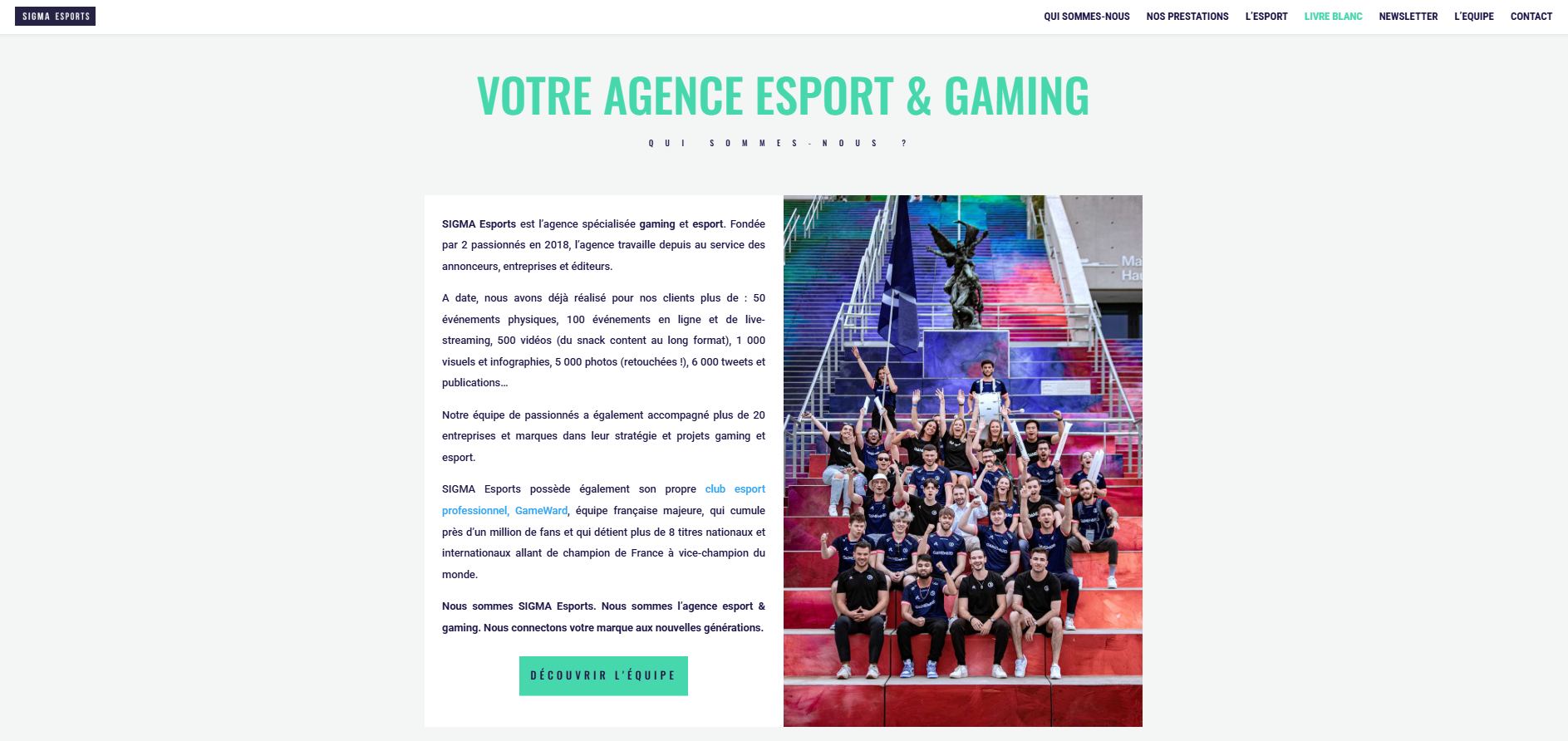 SIGMA Esports est l’agence spécialisée gaming et esport. Fondée par 2 passionnés en 2018, l’agence travaille depuis au service des annonceurs, entreprises et éditeurs.